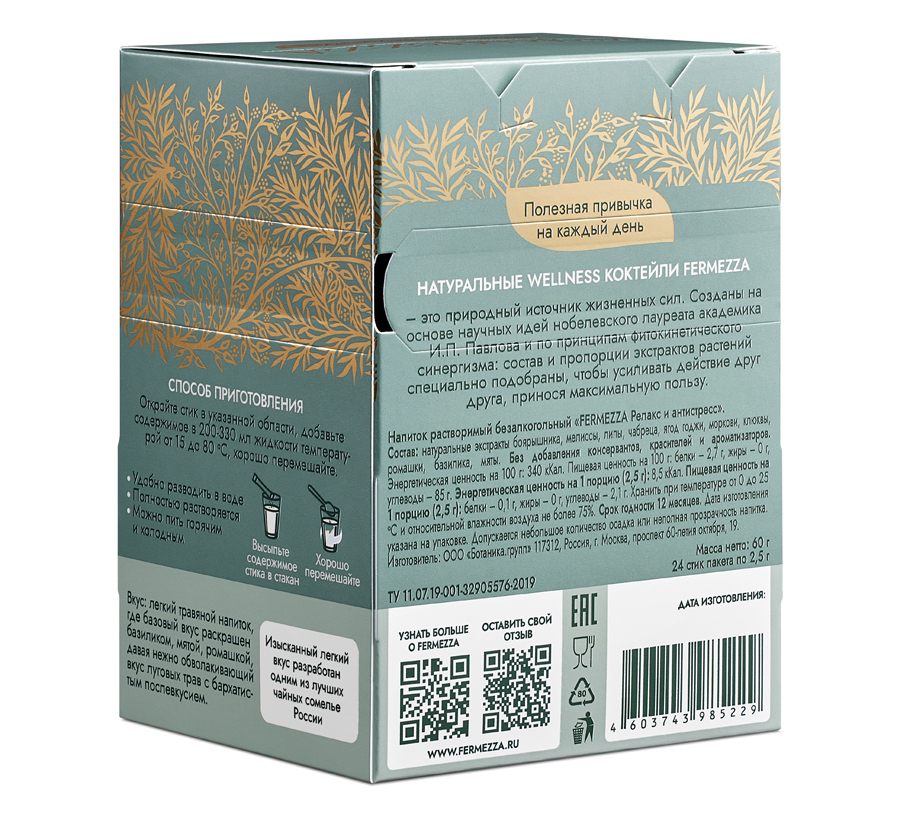 Всеки чай FERMEZZA е създаден с участието на водещи чайни сомелиери,които подбраха вкусови комбинации, така че напитките да бъдатедновременно полезни и изключително приятни.